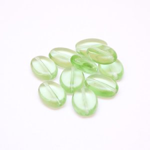 These oval shaped Czech glass mint beads are produced in moulds which allows for more complex shapes and a uniform size and hole.