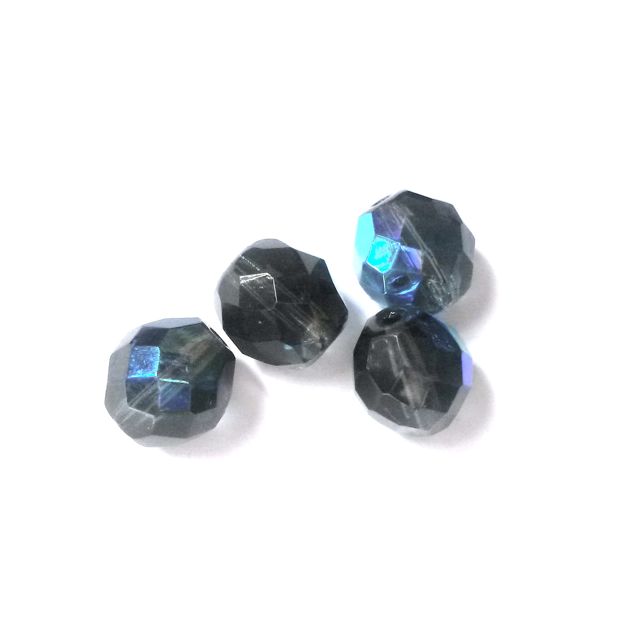 These 10mm montana AB Czech fire polished crystal beads add sparkle at a fraction of the price of lead crystals. The North Bohemian region of Europe, with its centuries-old glass-making traditions, moulds, cuts (round facet), and polishes beads until smooth and shiny using an intense heat. (Hence their name fire polished.)