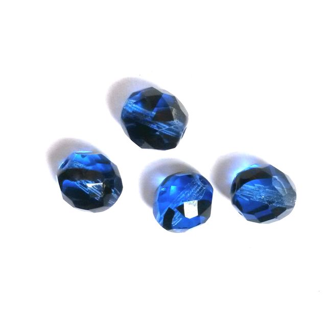 These 10mm blue Animal Print Czech fire polished crystal beads add sparkle at a fraction of the price of lead crystals. The North Bohemian region of Europe, with its centuries-old glass-making traditions, moulds, cuts (round facet), and polishes beads until smooth and shiny using an intense heat. (Hence their name fire polished)