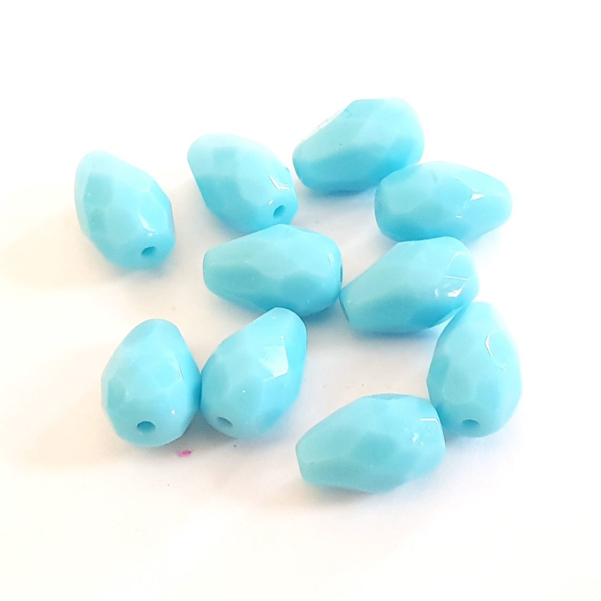 These 10x7mm turquoise Czech fire polished crystal drop beads are made using centuries-old glass-making traditions by machine bead cutting and polishing.