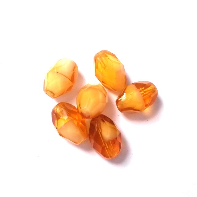 11x8mm Oval Amber Mix Czech Fire Polished Bead