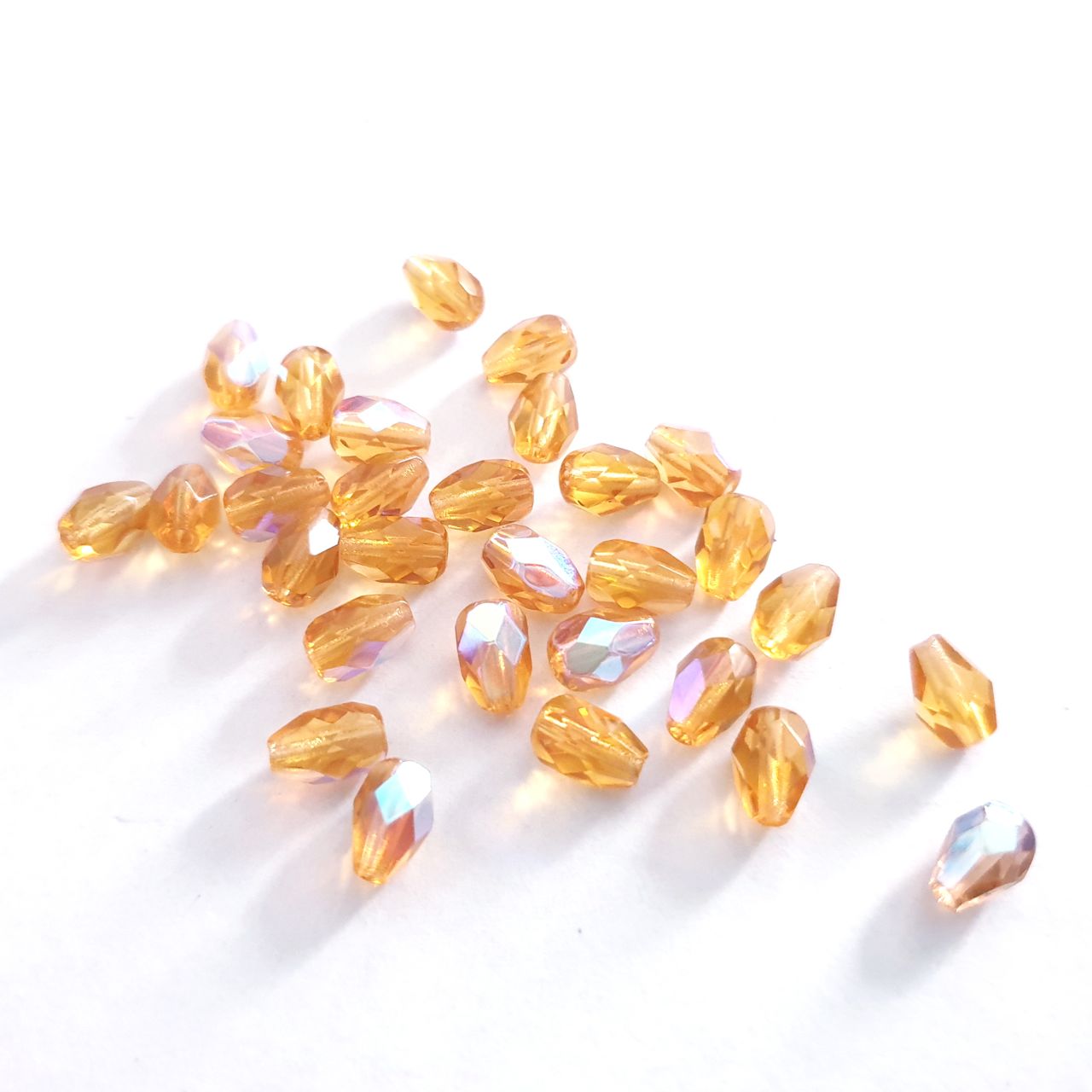 7x5mm topaz AB glass fire polished facetted crystal drop beads are made in the North Bohemian region, modern day Czech Republic.