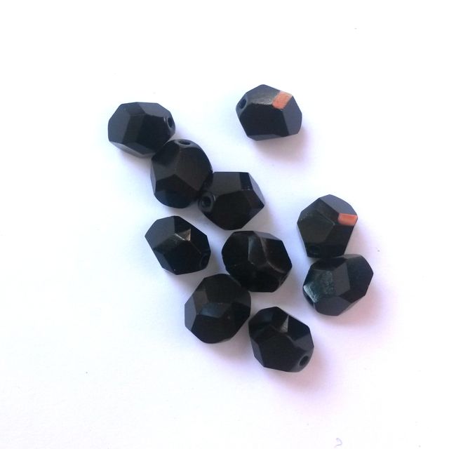 8mm Black Opaque Czech Fire Polished Glass Bead Contemporary Cut