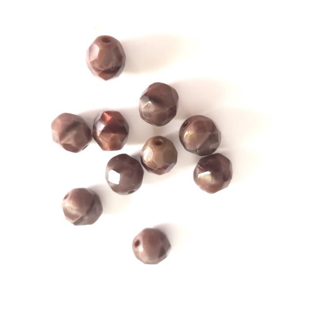 These 8mm brown silk Czech fire polished crystal round beads are made by machine bead cutting and polishing which makes the beads smooth and shiny using an intense heat. (Hence their name "fire polished".)
