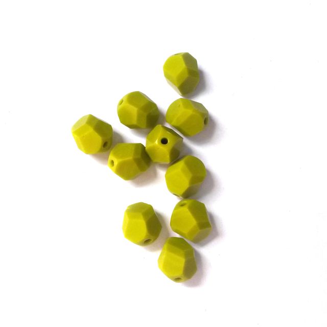 8mm Chartreuse Opaque Czech Fire Polished Glass Bead Contemporary Cut