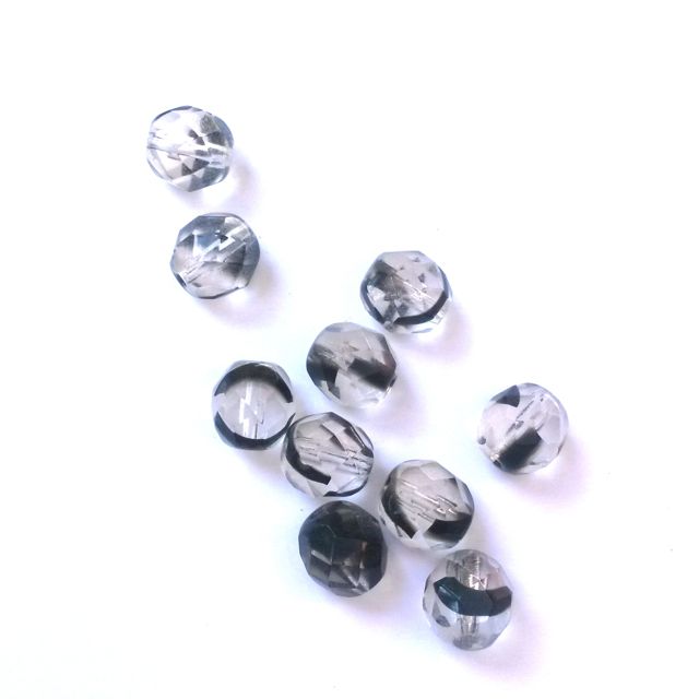 These 8mm clear black zebra mix Czech fire polished crystal round beads are made by machine bead cutting and polishing which makes the beads smooth and shiny using an intense heat. (Hence their name "fire polished".)