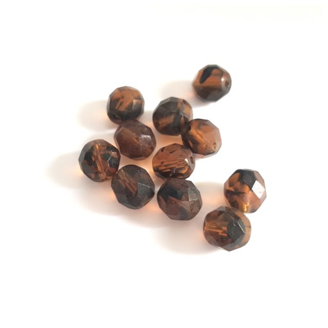 These 8mm zebra animal print Czech fire polished glass beads are shaped in a mould, cut into a round facet, and polished until smooth and shiny using an intense heat. (Hence their name "fire polished crystal".)