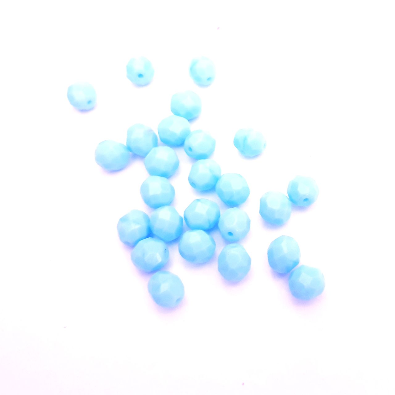 These 8mm turquoise opaque Czech fire polished crystal round beads are made by machine bead cutting and polishing which makes the beads smooth and shiny using an intense heat. (Hence their name "fire polished".)