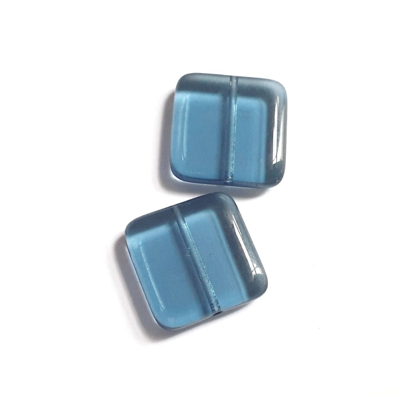 Square 20mm Montana Blue Transparent Czech Glass Bead