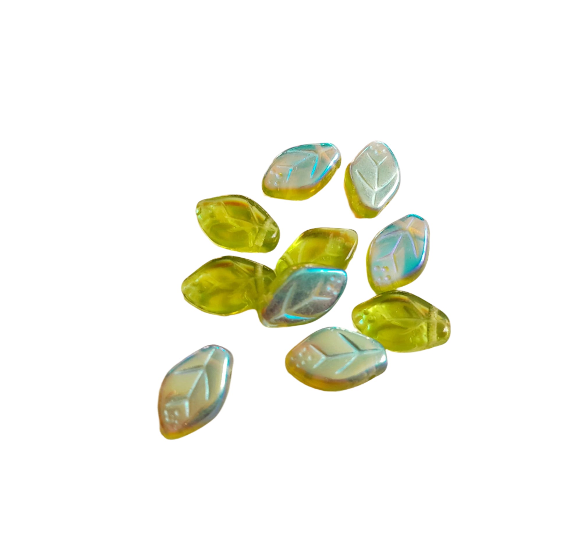 Olive Green Leaf 12x7mm AB Czech Glass Bead