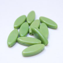 Green Opaque Petal Pointed Oval Spindle 16x6mm Czech Glass Bead