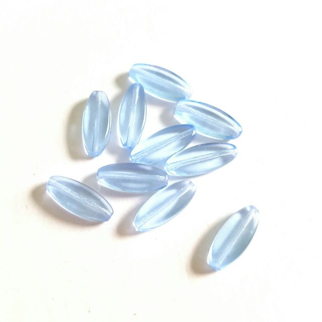 Blue Transparent Petal Pointed Oval Spindle 6x16mm Czech Bead