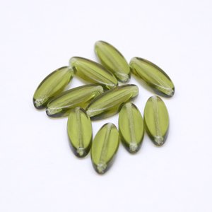 Olive Transparent Petal Pointed Oval Spindle 16x6mm Czech Glass Bead