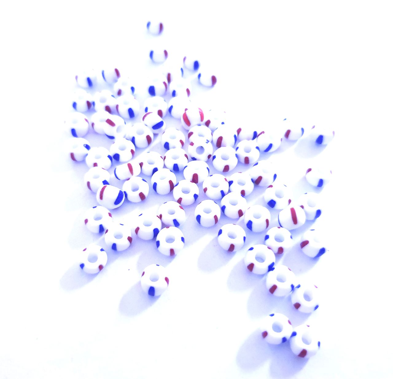 Seed Beads Stripe Royal Blue and Cherry Red on White 4.5mm