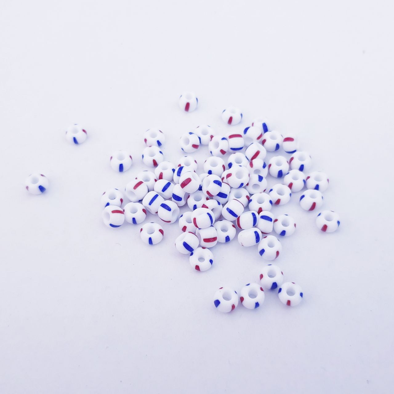 Seed Beads Stripe 4-5mm Cherry Red Royal Blue on White