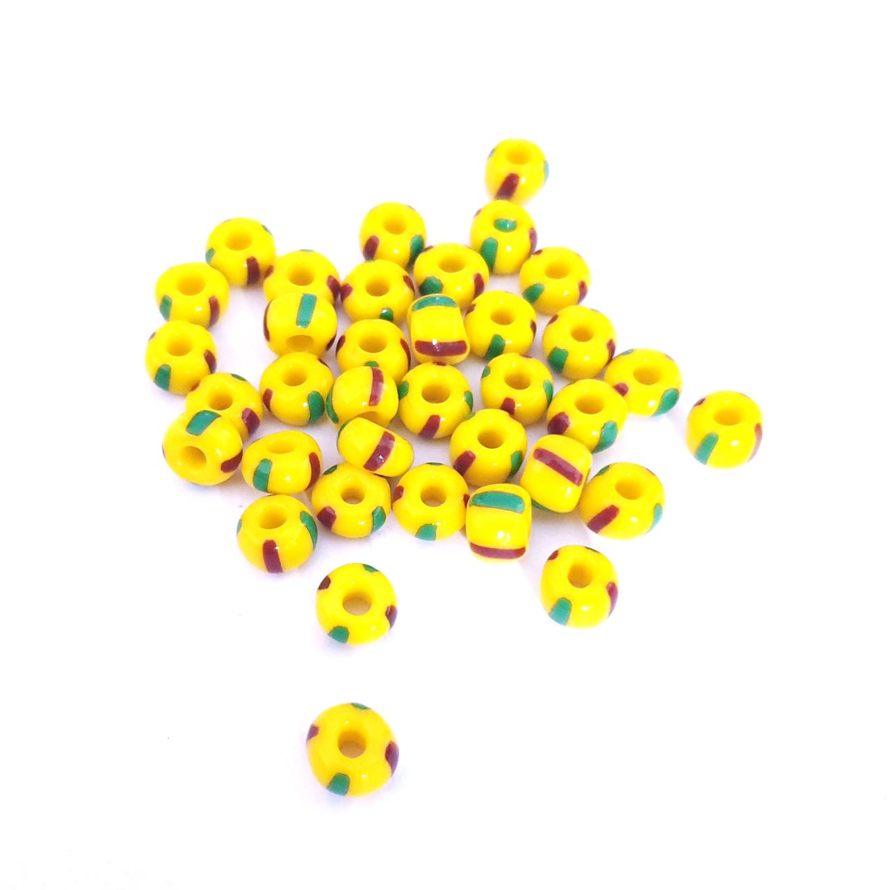 Seed Beads Stripe 8-9mm Cherry Red Green on Yellow