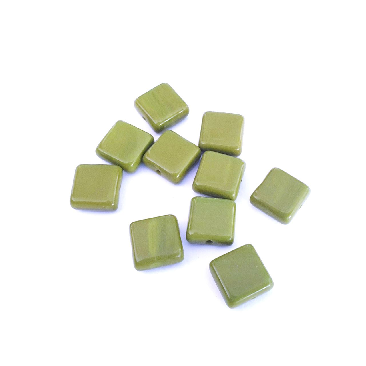 These tile 10x10 opaque olive Czech glass beads make a great minimal statement to your jewellery designs.