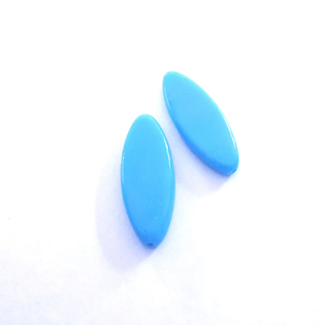 Turquoise Opaque Petal Pointed Oval Spindle 30x11mm Czech Glass Bead