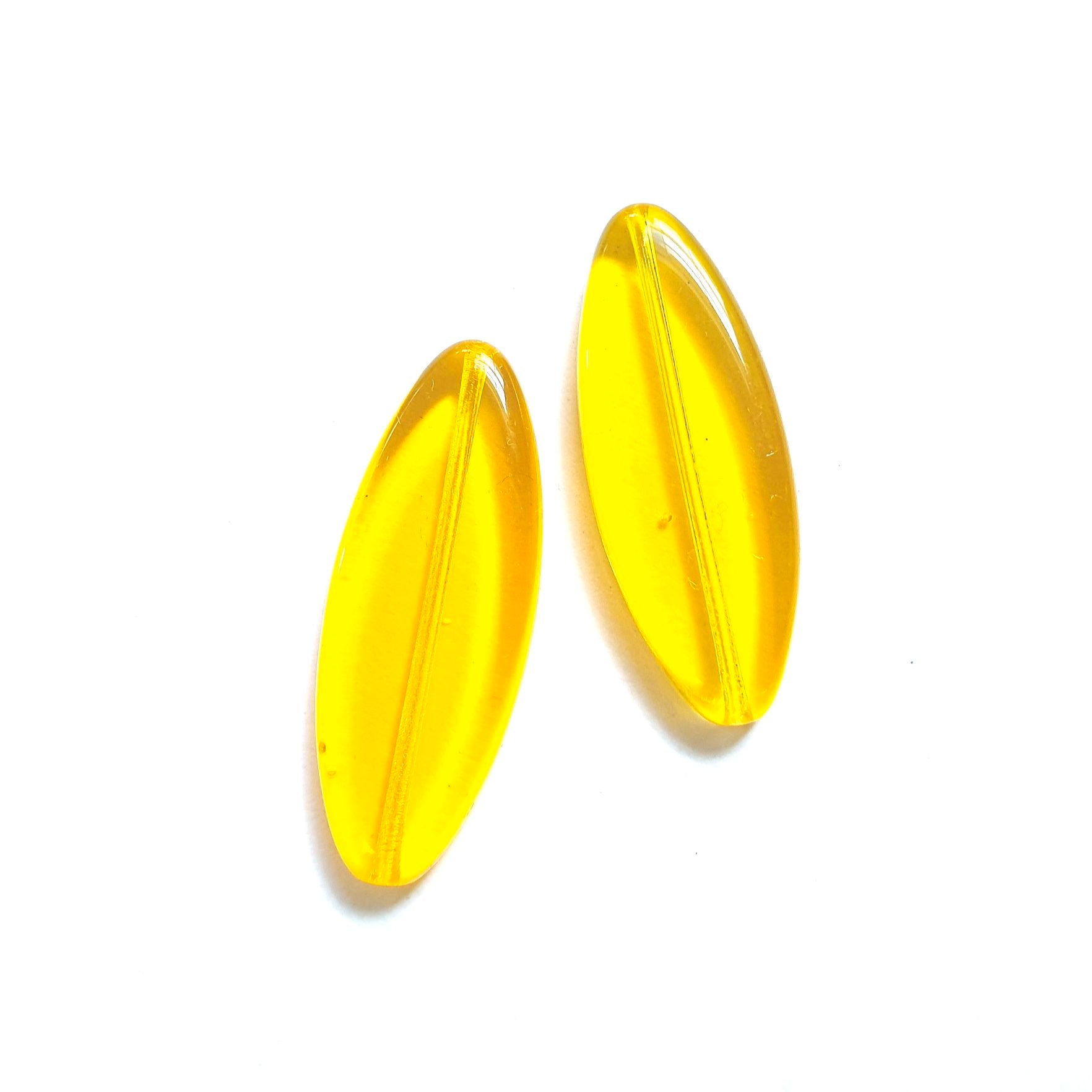 Yellow Transparent Petal Pointed Oval Spindle 30x11mm Czech Glass Bead